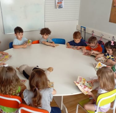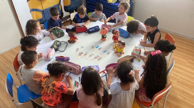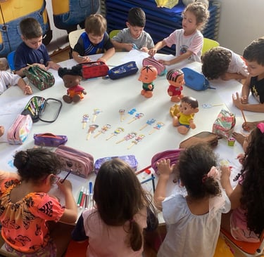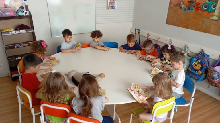 A Escola Divertidamente realiza os agrupamentos por faixa etária e de acordo com o desenvolvimento individual de cada criança;